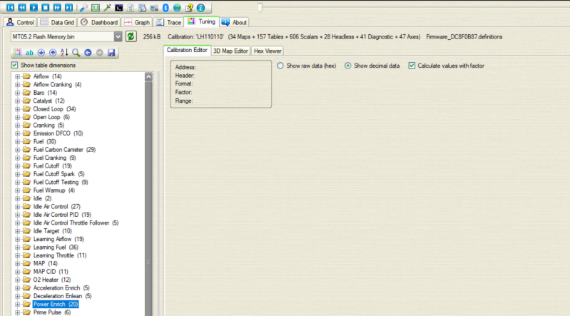 Voordat je gaat tunen moet je eerst de gehele geheugen van de ECU downloaden. Hierdoor weet het programma welke tabellen en gegevens er in de ECU staan. Tevens slaat het programma ook de originele code op als de getuned code niet bevalt.