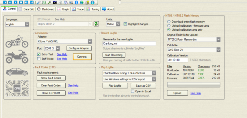 - "Rongmao MT05" als je een Rongmao MT05 ECU hebt;