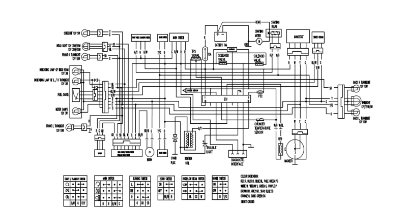 Te gebruiken voor chinese scooters die het Motion EFi systeem gebruiken. Tevens ook te gebruiken voor het Delphi EFI systeem en Rongmao EFI systeem. Alleen de kleuren zijn afwijkend en wordt er niet gebruikt gemaakt van een electric converter. (rechts bovenin met het wordt Trigger Coil ernaast) Dit is een begrenzer in het Delphi EFI systeem.